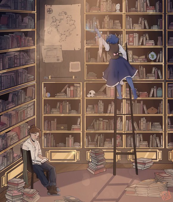 After a week “Library Date” is finally done 😅 started as a joke for @DnDpodMonster has now turned into my most extensive digital piece (characters belong too @CriticalRole @LauraBaileyVO @VoiceOfOBrien ) #Criticalrole #criticalrolefanart #CriticalRoleArt