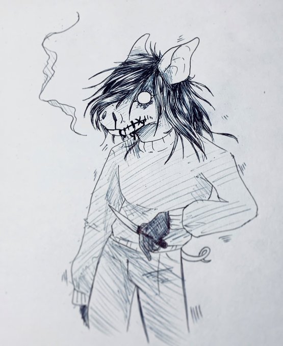 Merry Halloween!!! Here’s a pig person inspired by the pig masks in Saw! #sketch #illustration #draw #sketchbook #digitalart #inktober #blood #pencil #space #sockopsoc #doodles #gore #sketching #spooky #sona #halloween #ink #characterdesign #inktober2020 #sketches #pen