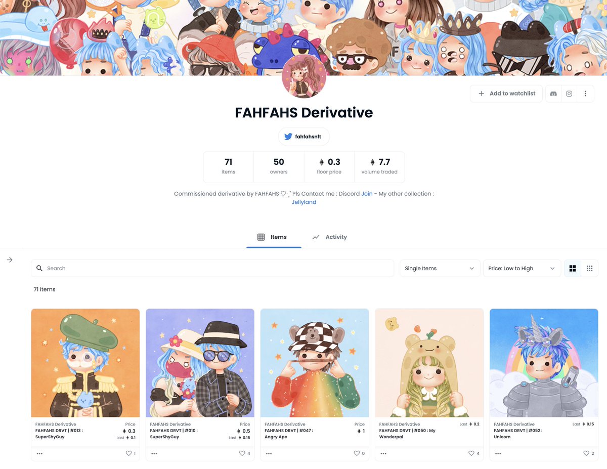 MY COLLECTION 🎡 JELLYLAND : Amusement Park has lots of fun Jelly rides waiting for you to explore. (Total 420 items) opensea.io/collection/jel… 🖌 DERIVATIVE : Commission opensea.io/collection/fah… 🐻 ORIGINAL : Features all the Original illustrations opensea.io/collection/fah…