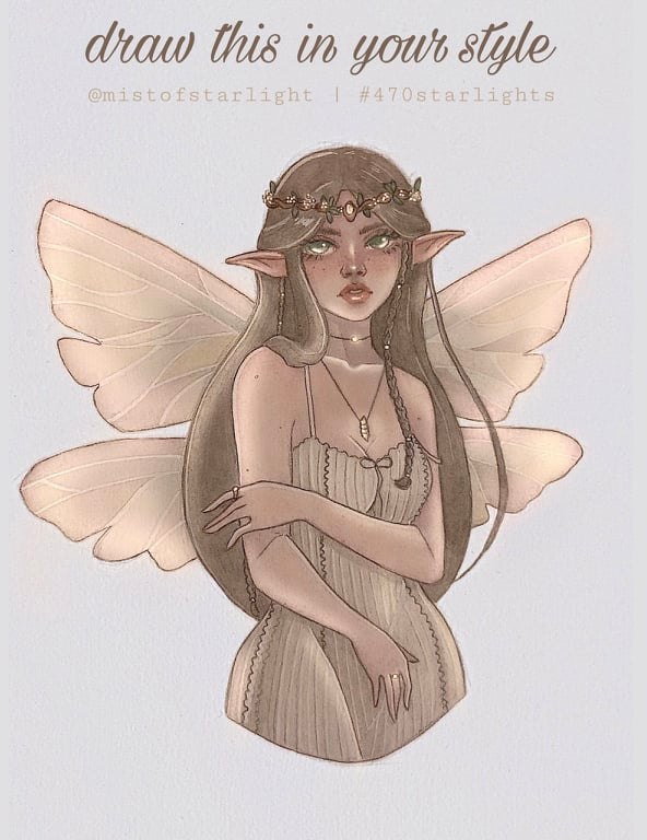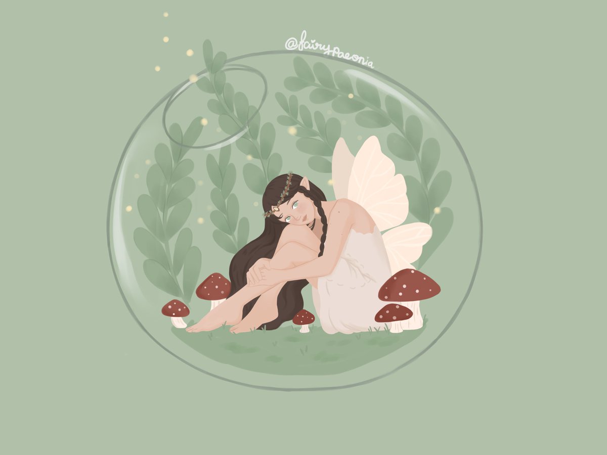 for @mistofstarlight's dtiys! finally drew a fairy 🧚♀️🍃🍄 i thought abt drawing her in a lil' terrarium! #470starlights #artph
