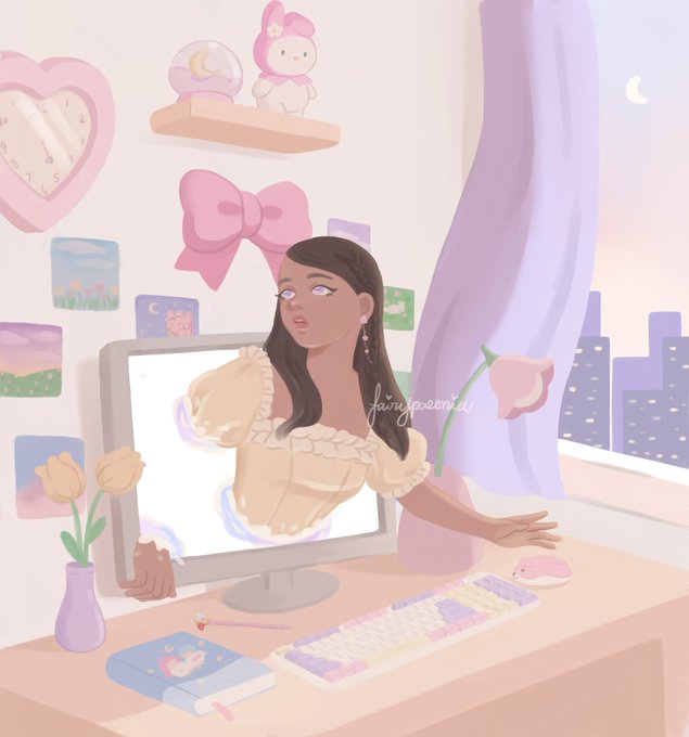#PortfolioDay Hi! I'm Paeonia, who likes to daydream 💖🌟 My name is the genus name of the flower Peony. I mainly draw women and pastel aesthetics. I also enjoy mermaids, fairies, witches and princesses! ig: fairypaeonia