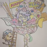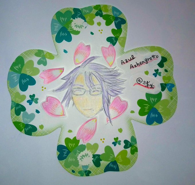 (爆笑)今までの最大6㎝のアズールを海馬瀬人の悪夢から描き上げ色紙に直接は描けない(色鉛筆じゃ色のり微妙)と切り取りそれっぽくしたけどおかしくて笑いが止まらん(笑) #春のアズール・アーシェングロッド祭り #ツイステファンアート