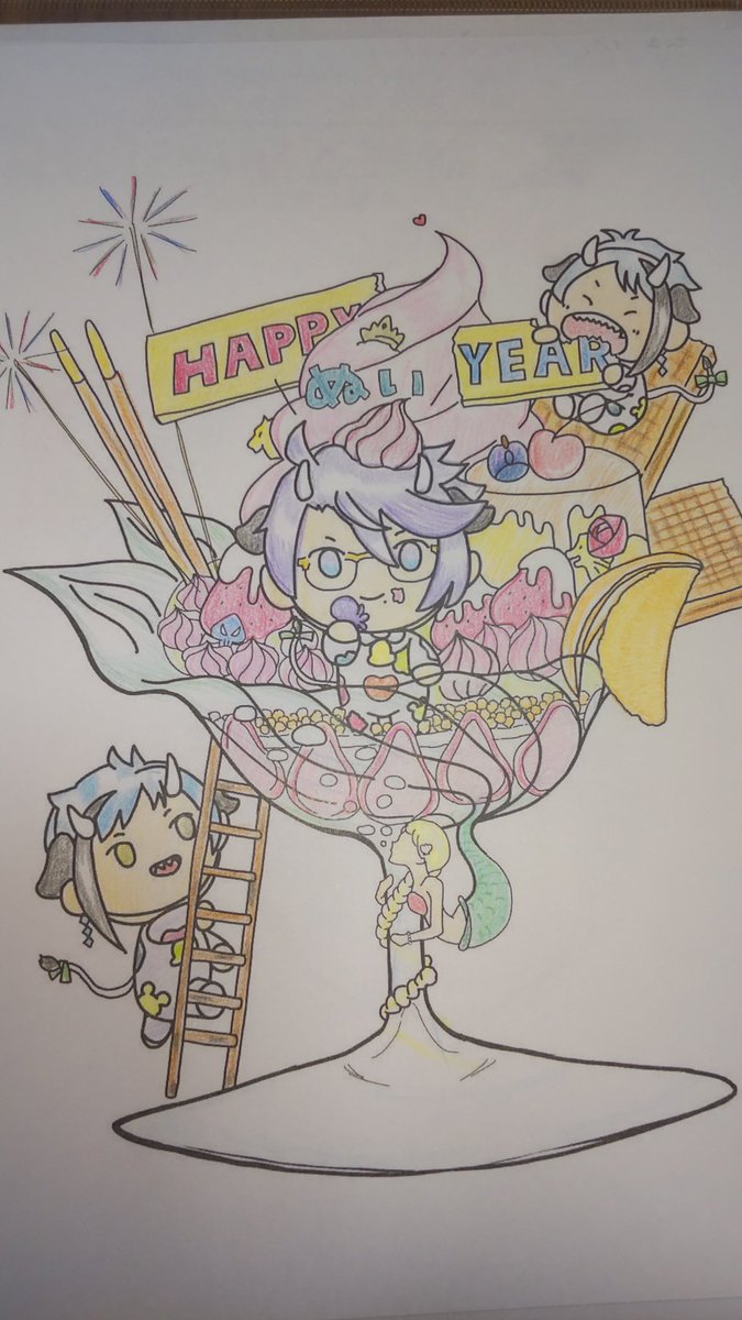 アイコン描き始めたけど寮章が描けないから 好きなオクタ練習してみたww ここで描けても絵の一部にするのは無理かな? ☘️色鉛筆で色塗りしだしたら 描き直ししまくった痕跡がw 寮名も紫が強くて見え難い(*´ω`*) #ツイステファンアート #twstファンアート ←何とか描いた下描き ペン入れと色塗り→