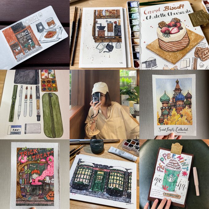 ชื่อฝ้ายค่ะ •อาชีพหลักพนักงานออฟฟิต อาชีพรองวาดรูป ชอบวาดของกิน ตึกรามบ้านช่อง วาดอะไรที่ไม่มีชีวิต •ชอบลงสีอิฐด้วยค่ะ5555 •นอกจากวาดภาพประกอบ ก็ยังวาด travel journal ด้วยค่ะ •ใช้สีน้ำ/ปากกาเป็นหลัก(เพราะลงสีแบบอื่นไม่เป็น555😂) #เมคเฟรนนักวาด