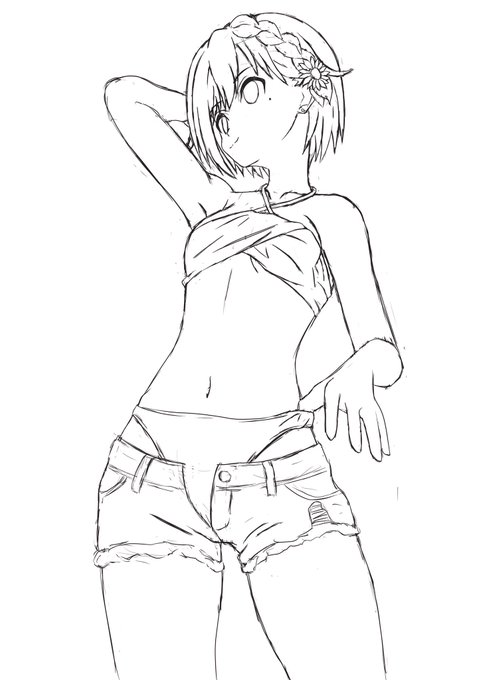 前に描いたラフの線画 これから色塗るよ #彼女なぉた #なぉたチェキ