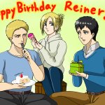 なんとか間に合った! ライナー誕生日おめでとう‼️🎉🎉 人間味溢れるライナーが、いつまでも大好きです🥰 同郷トリオでプチ誕生会してね〜✨鼓膜には気をつけて!😁 #ライナー生誕祭2021 #ライナー・ブラウン生誕祭2021