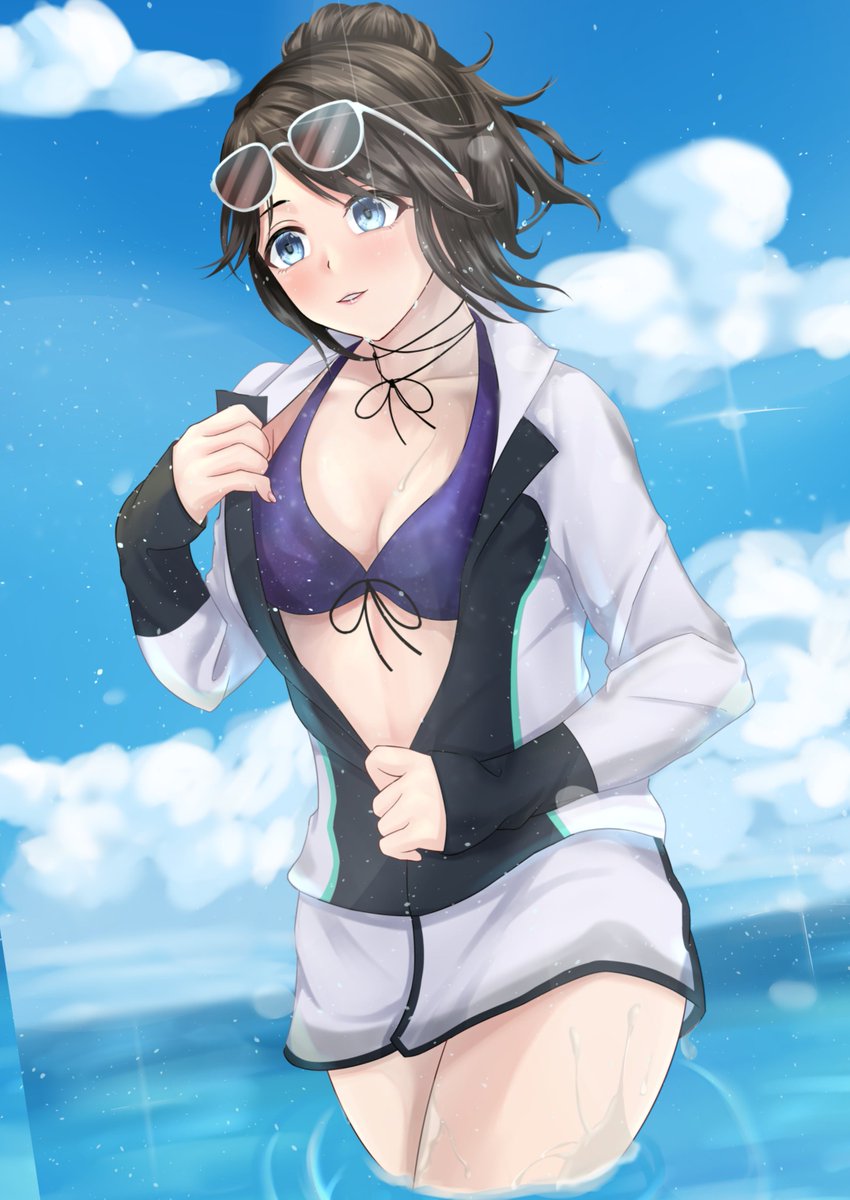 #三峰結華を3のつく日の3時33分に投稿する 50枚目 リフレッシュサマーの三峰を描きました。 題して、【シー・イズ・サイド・結華】三峰結華。 シー・イズ咲耶の三峰側的な感じ。 結って結んで、5人で花火を捕まえて。