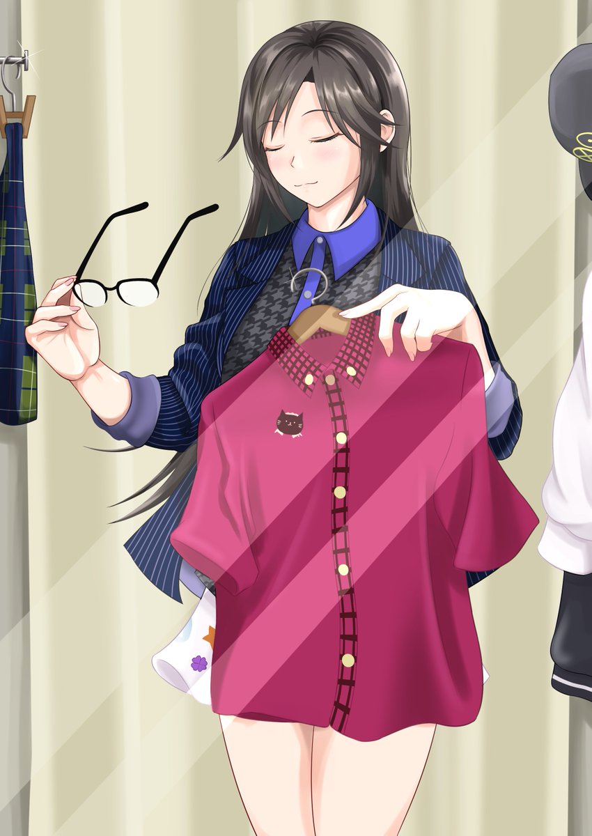 #三峰結華を3のつく日の3時33分に投稿する 58枚目 メガネをかけるもお洒落の一つ、メガネを外すもお洒落の一つ。 NOT≠EQUALの三峰がどういう気持ちだったかを考えて描きました。 シャニマス始める前にNE三峰を見たとき、そういう考え方をぶつけられたような気がしたのは懐かしい思い出。