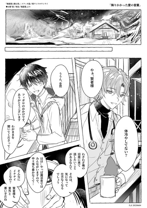 #フィガ晶くん版ワンドロワンライ フィガ晶♂ | お題『愛』『夜空』『幾星霜』より 遅刻しながら投稿させていただきました!大変失礼しました。 今回はずっと描いてみたかった晶くんの告白シーンを挑戦してみました!よろしければ見てみてください☺️️️…! 『降りかかった愛の言葉』 (1/2)