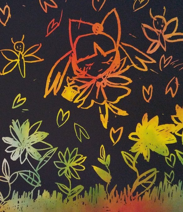 上手に妖精さん描いてるのすごいなあと感じました🌼 #スクラッチアート #お絵描き #オリジナル #イラスト #illustration