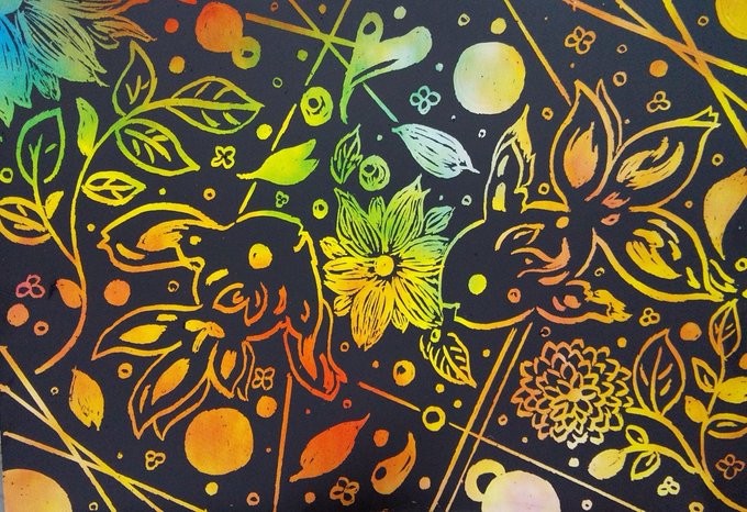 4 9 お花🌼を削ってました。 最終的にはどうなるでしょう…? 考えながら削ってみます☘️ #スクラッチアート #お絵描き #オリジナル #イラスト #illustration 22/12/17 11:52
