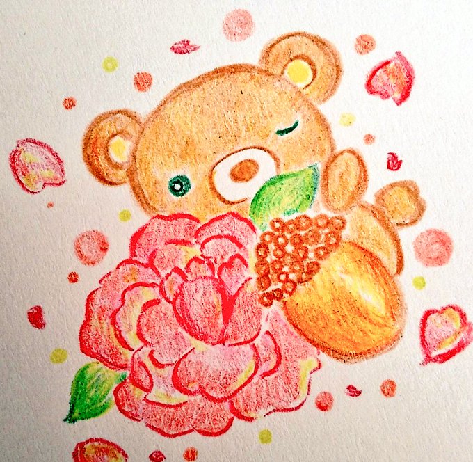 5 27 くまさん🐻 バラの花とドングリと共に。 遅めの秋の花のお絵描き🌼 #お絵描き #色鉛筆画 #動物 #オリジナル #アナログ #イラスト #illustration 22/11/28 20:09