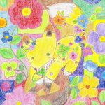 桃色蝶々🦋 たくさんの色に包まれて 早く安心する場所見つかりますように…🌼 #お絵描き #色鉛筆画 #アナログ #オリジナル #イラスト #illustration