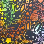○弾けて、ときめいて。 今年はじめて描いた絵です🐰 削るのまだまだ慣れてませんが、黙々出来ました。 ハートもお星さまもたくさんの色に包まれて…🌟 #スクラッチアート #動物 #お絵描き #オリジナル #イラスト #illustration
