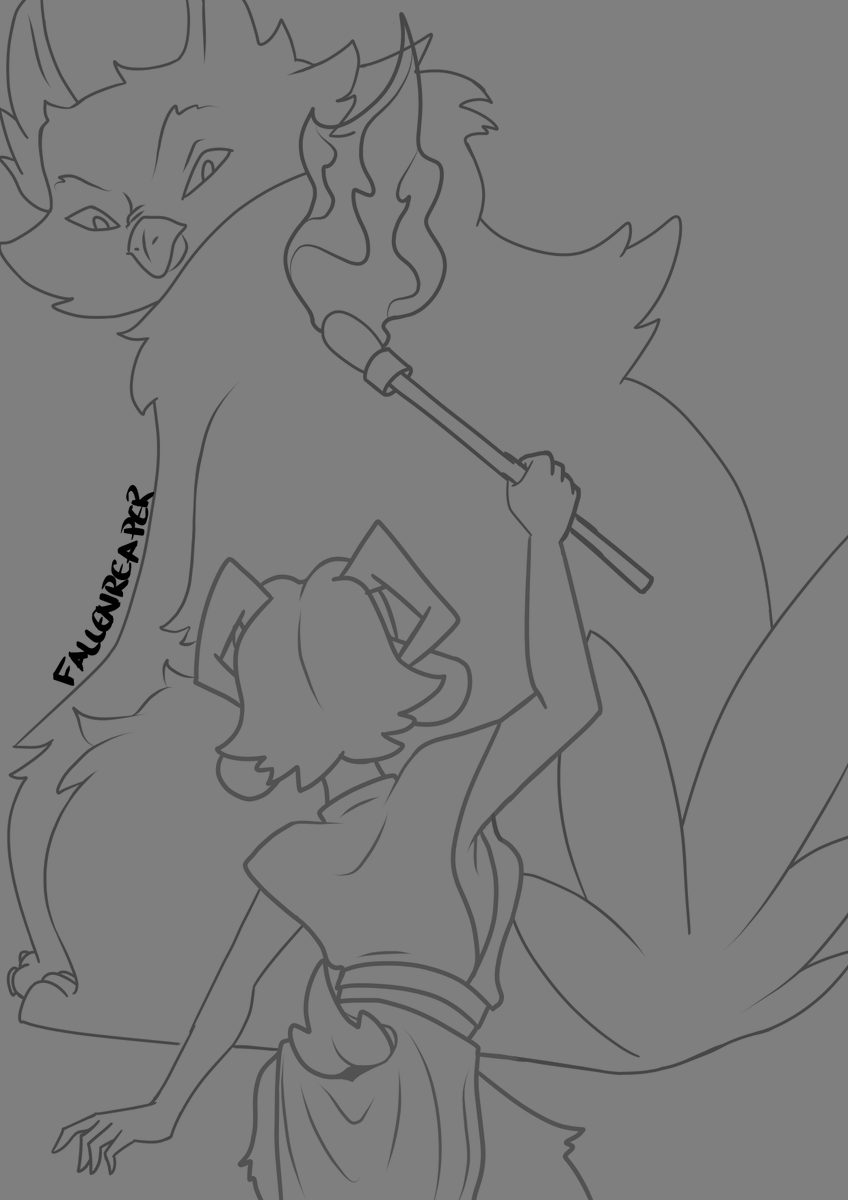 You don't get the full image this time, but I feel this brings out the tension and excitement. I'll likely have a story up when I finish this as I can see how my satyr gal got stuck in this unexpected predicament. #dndart #ArtistOnTwitter