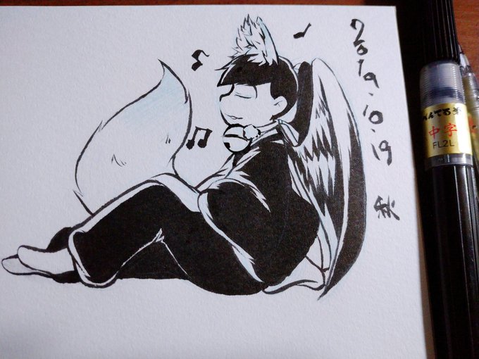 2 15 #インク松月間 羽根と尻尾でぎっちぎち🐯🦊 20/10/10 21:39