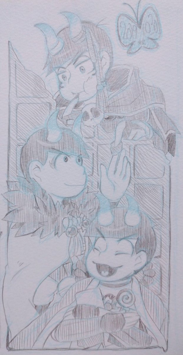 7 25 #インク松月間 ハロウィンカウントダウン🎃 夜刀神「菓子も悪戯もやろう」 闇堕ち「これが大人のする事かぁー!!」 烏天狗(二人とも楽しんでいる…のか?) 19/10/30 01:12