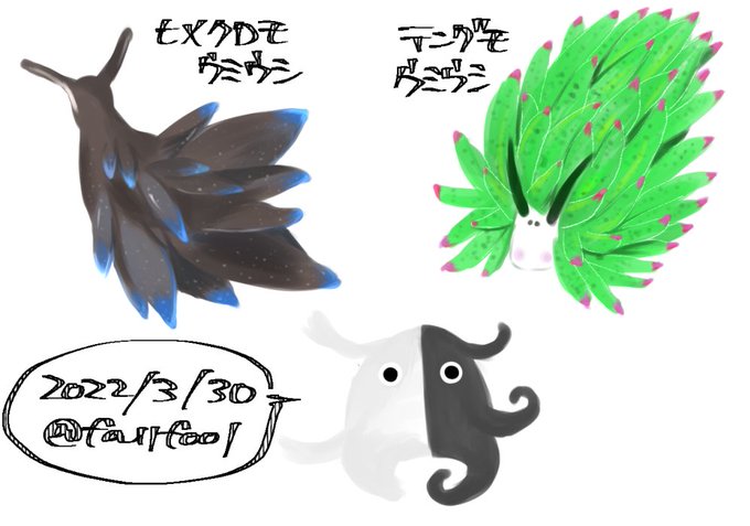 1 6 今日のどうぶつ ウミウシ ウミウシは色んな種類がいて検索するの楽しすぎた! 時間があればもっと描きたかったけどひとまず可愛いと思った子達を描きました✨🐚 22/03/31 00:38