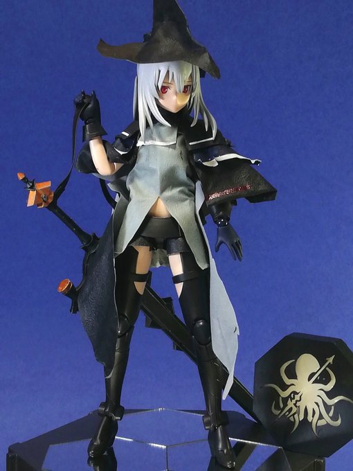 93 291 メガミデバイス スカジ完成。 衣装はニトリル手袋と熱収縮チューブ、武器とアビサルのロゴは3Dプリンターを使って作りました。 #メガミデバイス #アークナイツ 20/09/27 00:36