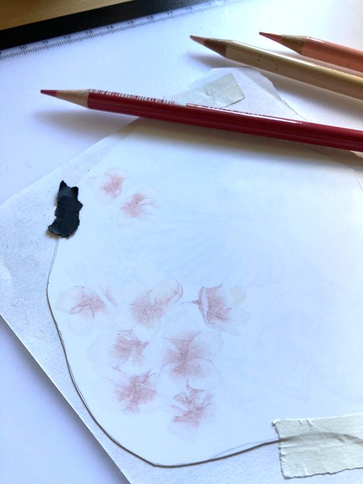 0 1 春のモチーフを慌てて作ります。 手描きゴリゴリでいきます #手描き #色鉛筆 #プラ板 #春もの 22/02/25 11:28