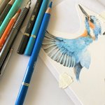 たまにはまじめに描くんだよ。 #カワセミ #色鉛筆 #製作中 #プラ板 #野鳥 #手描き