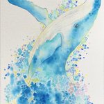 1 8 水彩紙を発掘したので久しぶりに紙に描いた。 アクリル絵の具しか無くて残念だけど🫤 #クジラ #水彩画 #アクリル絵の具 #海 #海の生き物 22/06/17 10:24