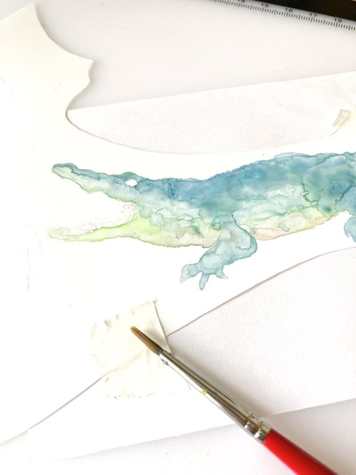 まだポヤポヤしてますね… #ワニ #クロコダイル #プラ板 #手書き #水彩