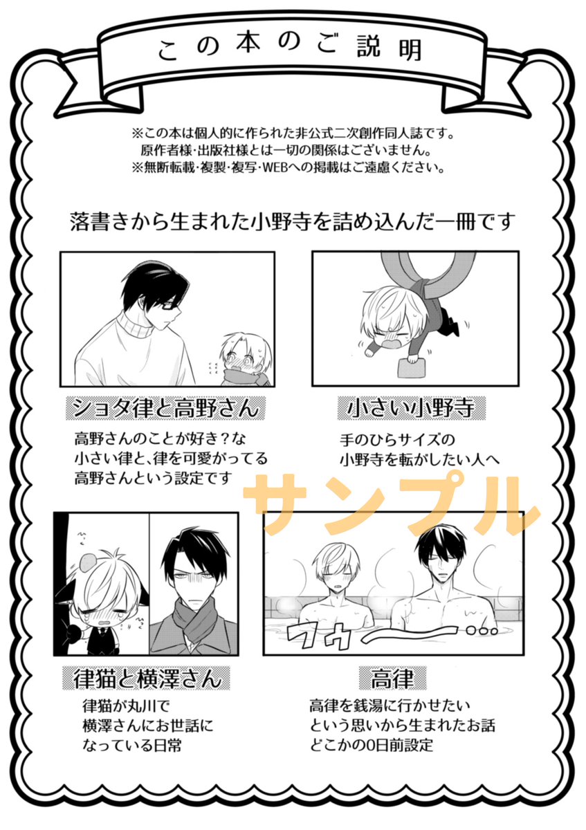 14 49 【12/18 新刊サンプル】 「小野寺ミックス」 本当に作ってしまいました いろんな小野寺を詰めた短編本です!🙇♂️ 22/12/13 17:45