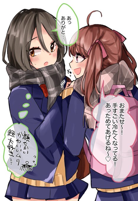 駅でこんな感じの2人組をみかけて心がとても温まりました #イラスト #創作 #創作百合