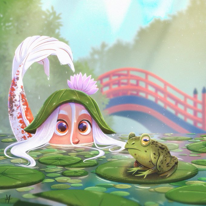 Playing koi, merhaps??? 🧜♀️ 🐸 #mermay #mermay2023 #digitalpainting