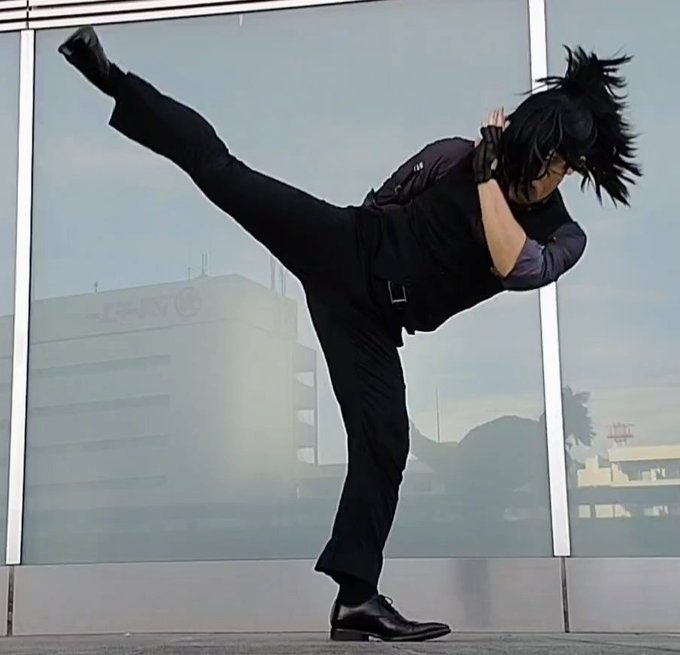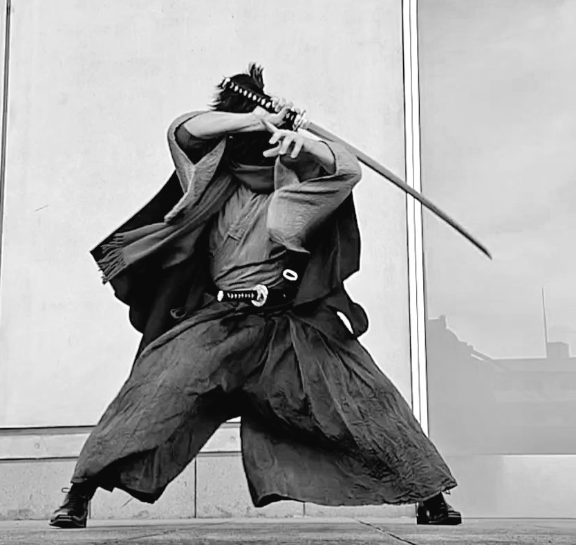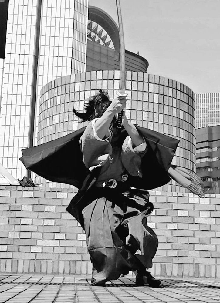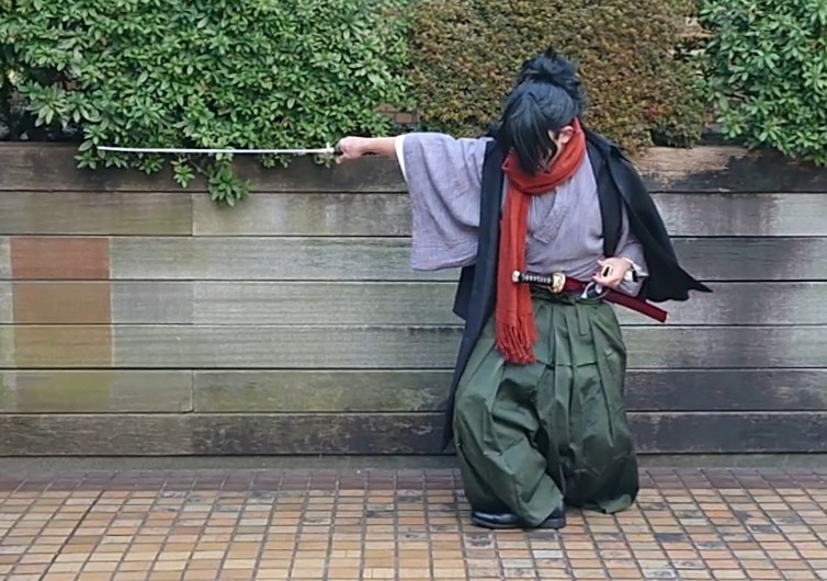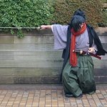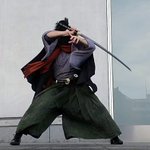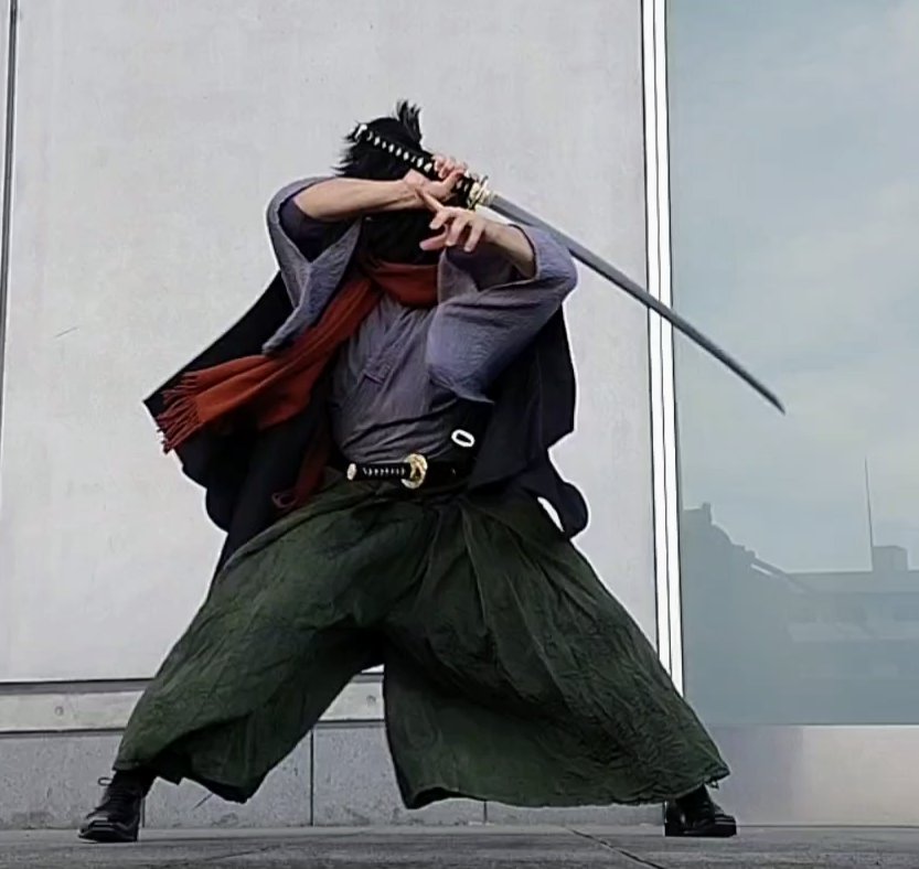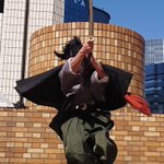 サメ兵士(@BillieNiceguy)を、野良新選組(@gingabancho)と倒そうとする以蔵さんの図。 撮影:天翔ホタルさん(@Hotaru_Games_) #ニコニコ超会議2022コスプレ