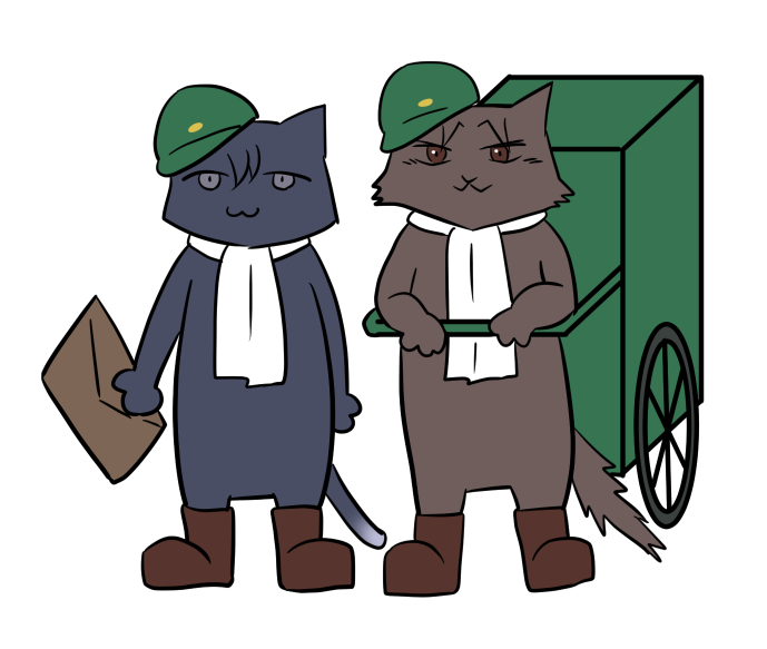 7 38 ミッタマおたおめとはあまり関係ないけど、クロネコニャマトでバイトしてる双璧ニャ描きました 22/08/30 21:49