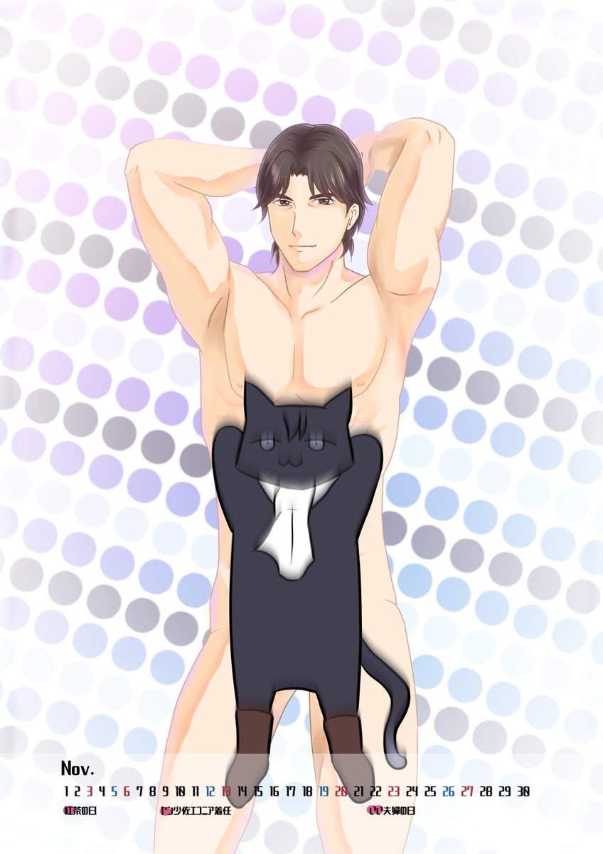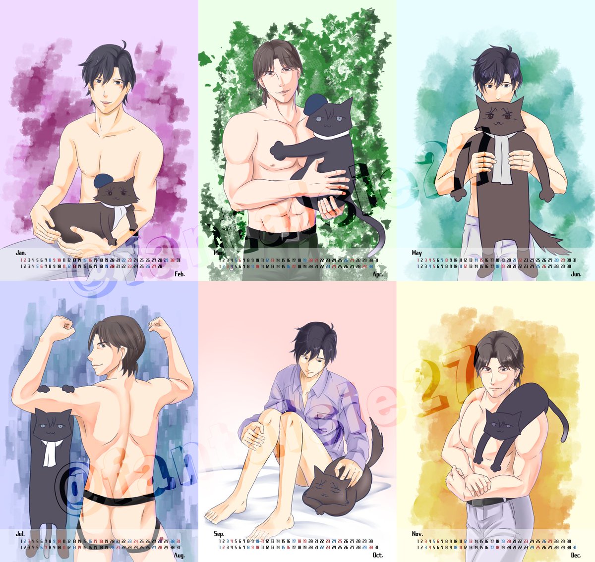 #今月描いた絵を晒そう ノリと勢いだけでうっかり半裸カレンダー錬成してしまった…ほんとサイオキシンキメてたとしか思えない…