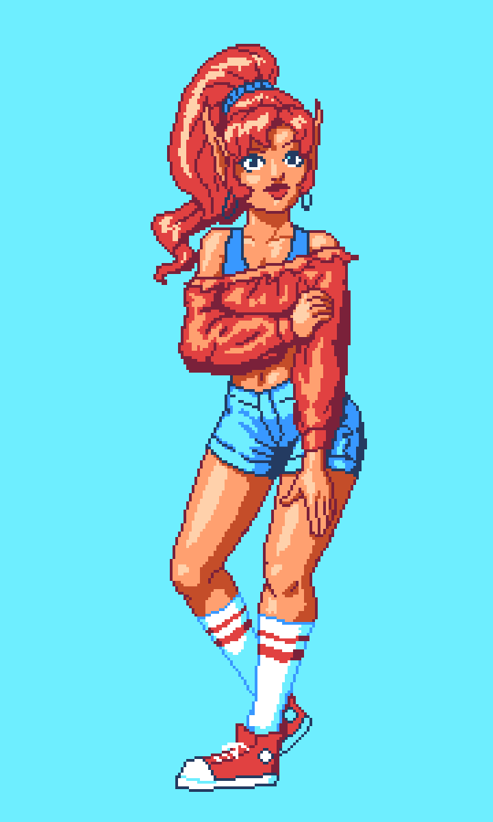 14 75 Fan art of @RhlPixels's bubblegum elf, just standin' around. #pixelart 21/06/17 03:16