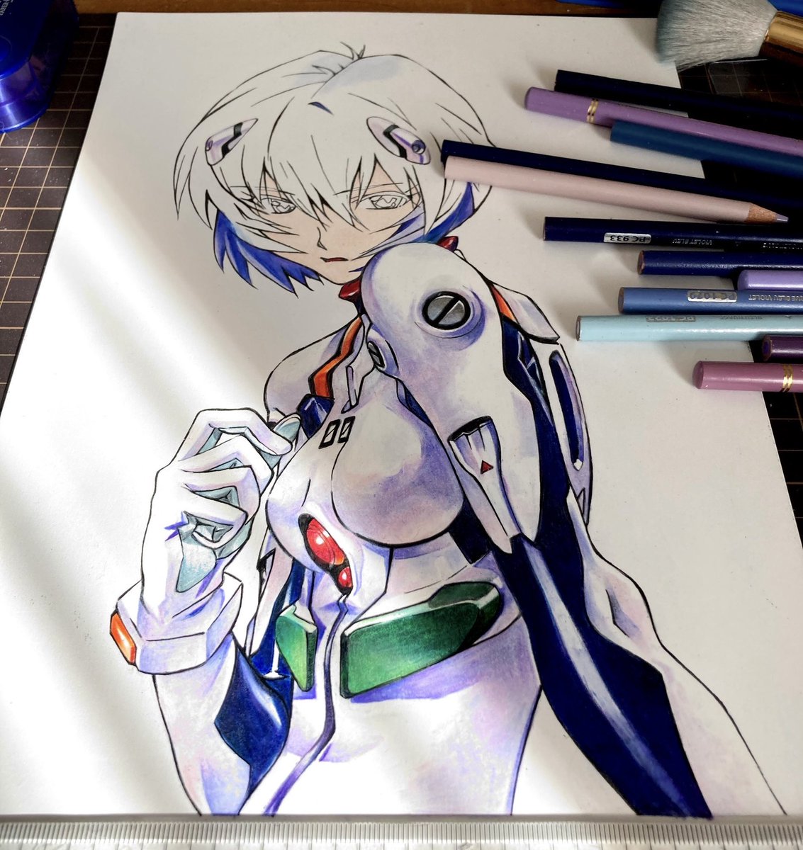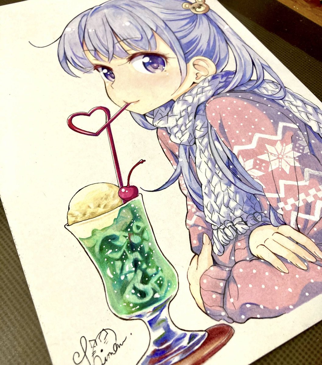 色鉛筆で青葉ちゃん描きました! プリズマカラーメインで、足りない色はホルベインで塗ってますʕ•͡•ʔ #ニューゲーム #涼風青葉 #模写 #色鉛筆