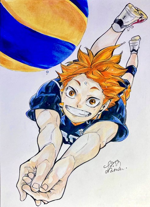 色鉛筆で日向描きました! 2週間ぶりの色つき投稿です 良かったら見てください!😘 #ハイキュー #日向翔陽 #模写