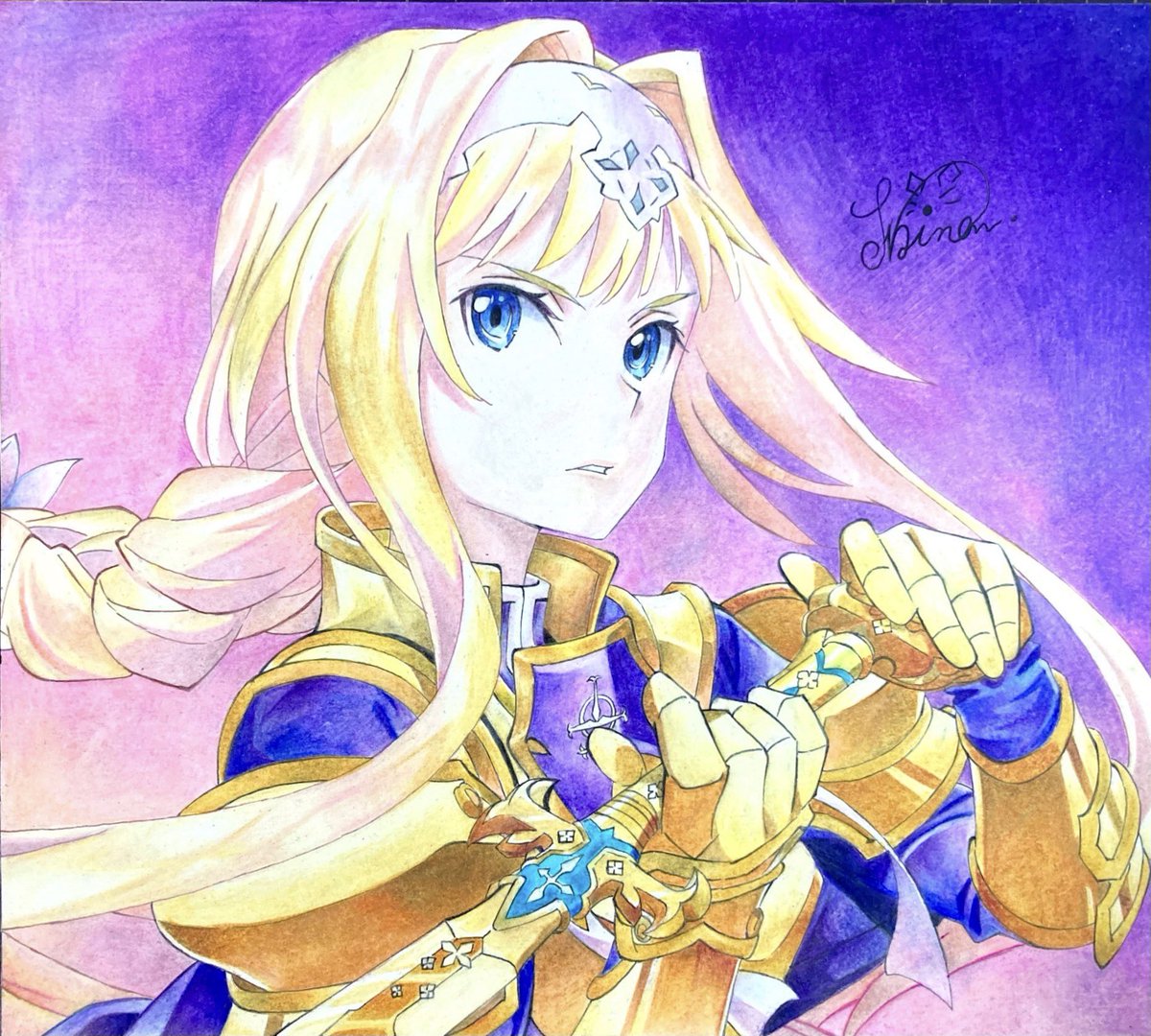 SAOよりアリスを模写しました! ついでにサインも新しくしました🐱 #アリス・シンセシス・サーティ #SAO #色鉛筆