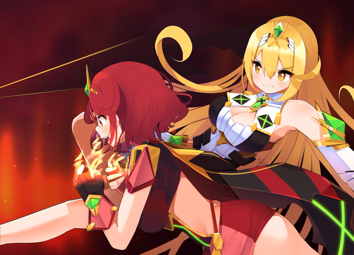 Pyra and Mythra in the style of XC3's character sprite 🔥✨ #XenobladeChronicles2 #ゼノブレイド2 #ゼノブレイド3