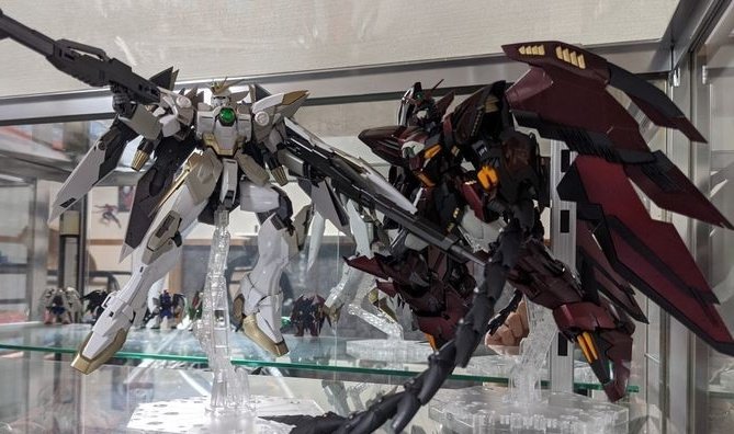 #ガンプラの画像貼るとRTされると聞いて 塗装のみ素組です。 プロトゼロはスノーホワイトカラーに、エピオンの赤は微妙に違うニ色を使用しています。 メタコンは関節ユルくなるし、高えし、素材劣化もするんで、 じゃあMG組めば良いじゃん派です。 因みに現在、ACT東京さんで展示に参加しております。