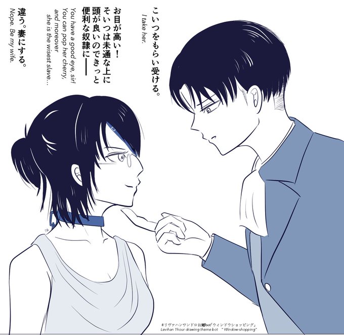 #リヴァハンワンドロbotお題 「ウィンドウショッピング」 事前作成+40min. over 『敵国の王女ハと恋に落ちた平民出身の兵士リが、自国を戦争に勝たせて、捕虜となり奴隷として売りに出されたハを買いに来る』という詳細な妄想があるのですが、ワンドロでは描ききれませんでした😇