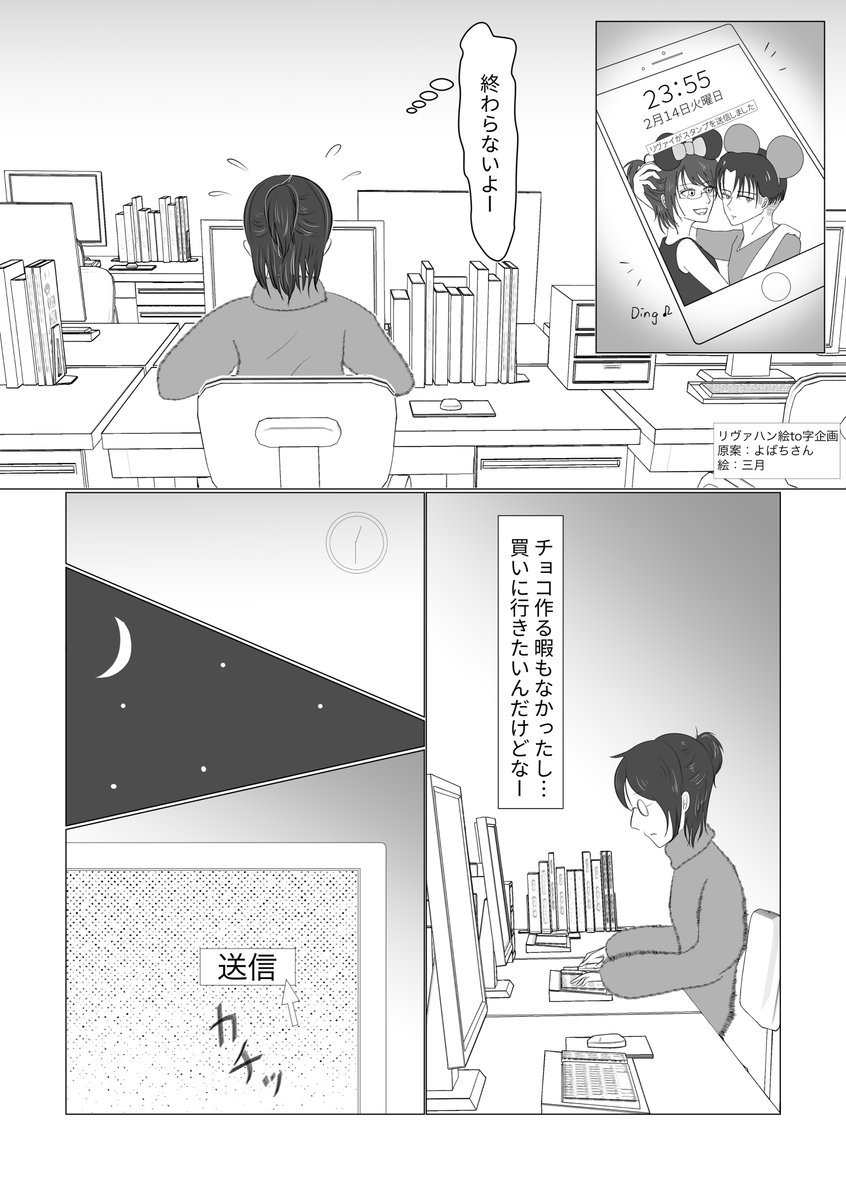 #リヴァハン絵to字リレー第一幕 よばちさん@_yobachi発案のスーパー胸キュンなバレンタインストーリーを描かせていただきました!ありがとうございました!猫の日も捨てがたいと仰っていたので無理やり猫をねじこんでます🐈💕 twitter.com/_yobachi/statu…