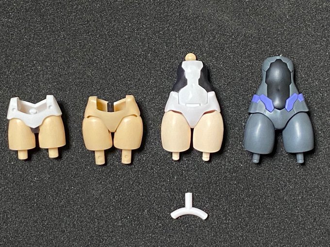 27 66 可能性のケ(ツ)モノ 左からメガミ標準、ボトムスパンツ+ボトムもも、ボトムスパンツ+30MSもも、30MS標準 ボトムス30MSの組み合わせはパンツ内の出っ張りを除去、股間軸はランナーから切り出したRのついたやつに変更 30MSももだけいっぱいほしい #メガミデバイス #30MS 21/09/05 01:05