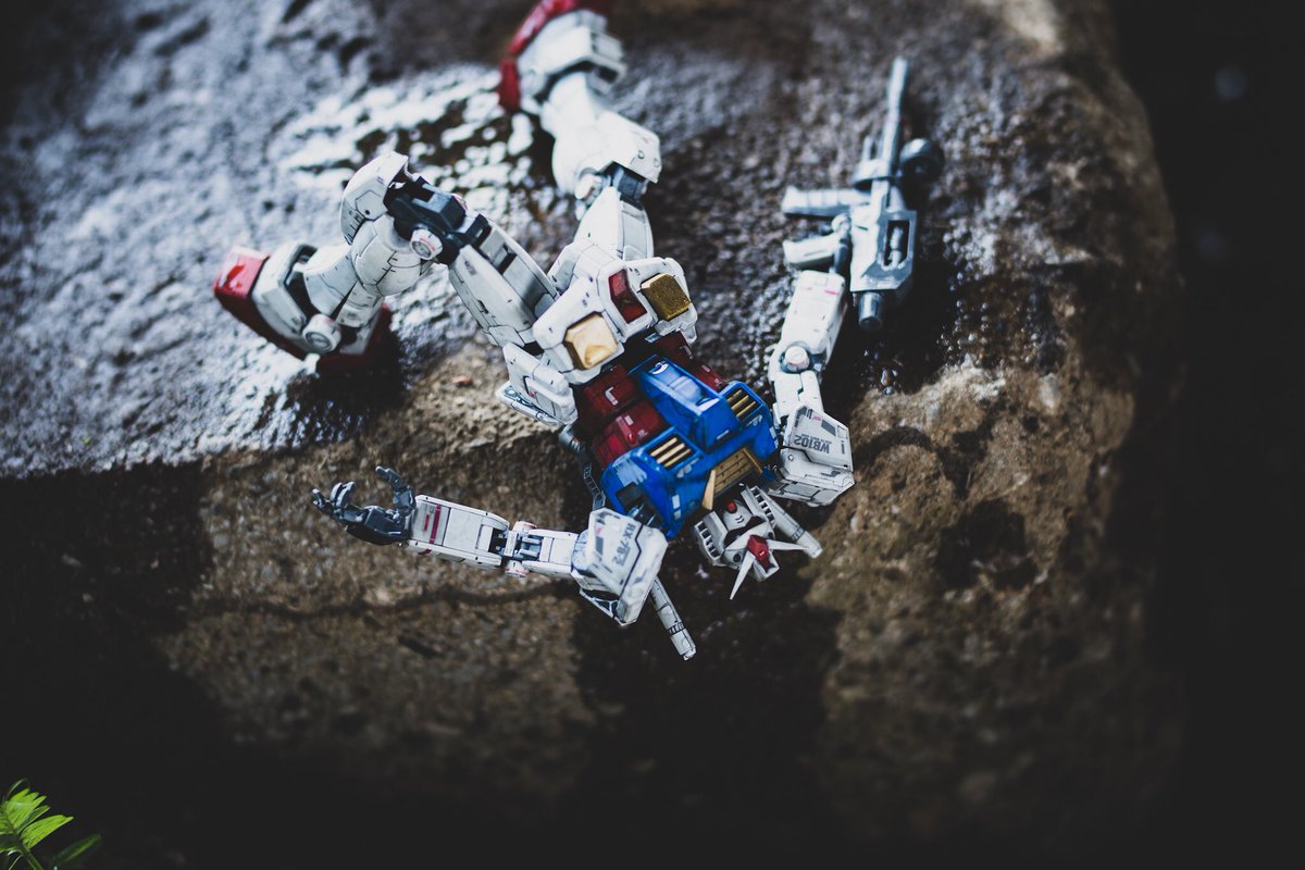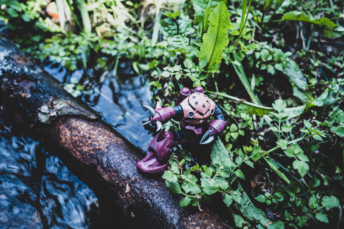 ガンプラをカッコ良く撮って残したいと思って、9年ほど前にカメラを始めました。 初心に戻って早朝の散歩ついでに撮影しました。思うように自立してくれなくて倒れた拍子にシールドが川に流されてしまいました。 #ガンプラおじさん #オモ写 #streetphotography