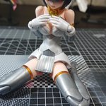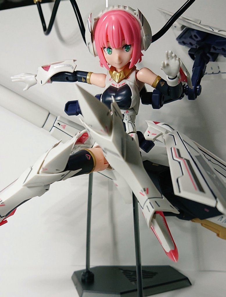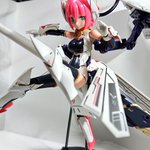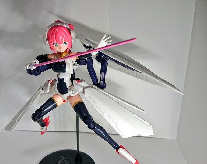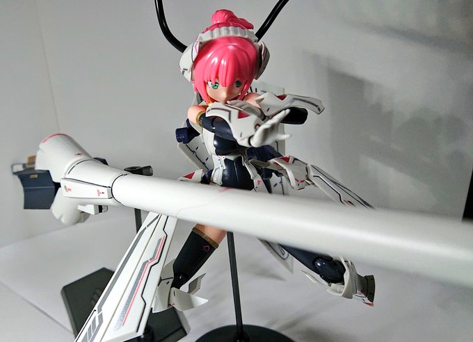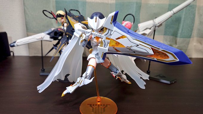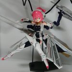 エクスブライドこれにて完成とします。 成型色の白がすごくキレイだったので、質感を損なわないよう半光沢のコートにしました。 ランラン姉妹と比較したらデカールも少なく楽ちんでした。 次はスサノヲちゃんの到着を待ちます。 #メガミデバイス #バレットナイツ #エクスキューショナーブライド