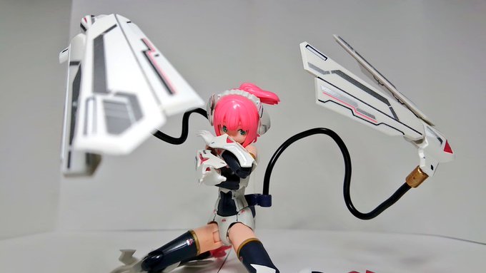 ランサーちゃんで遊んでたらこの時間になってました。 ラージランスを含む全武装が使用不可能になるほどの損傷を受けてしまった際、スカート装甲をパージして攻撃する【エマージェンシーモード】的なご提案です。 ちなみにこうなると大体負けます。 #バレットナイツランサー #メガミデバイス