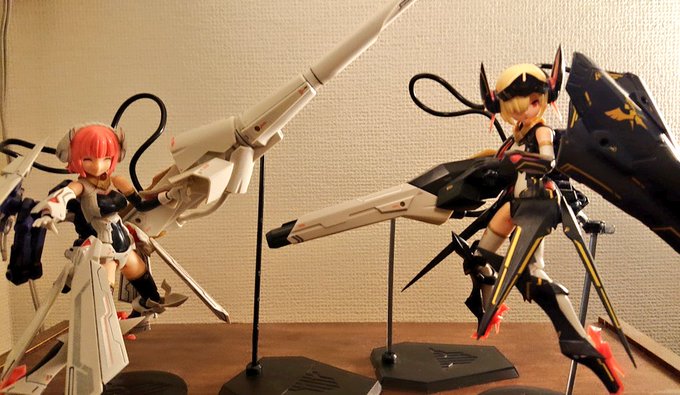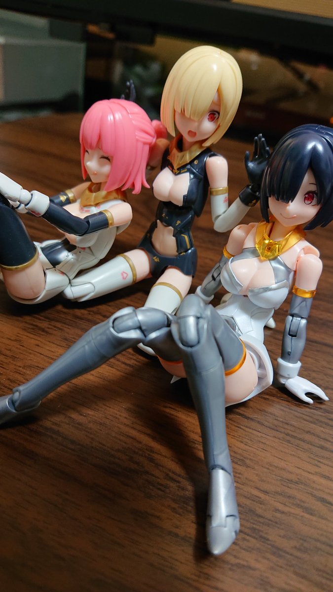 スサノヲちゃんをお迎えしたので、組み立て段階で一緒に写真を撮れるようバレットナイツ姉妹を久しぶりに武装解除しました。 おねえちゃん大好き #メガミデバイス #バレットナイツ #バレットナイツランチャー #バレットナイツランサー #エクスキューショナーブライド