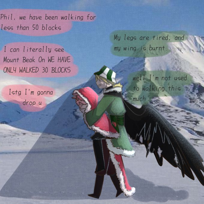 I really like this hc that after the first few months after cwilbur's death cphil had to get used to walking alot and ctechno would have to carry cphil whenever he gets tired #technofanart #philzafanart #emeraldduo #dsmpfanart #mcytfanart #emeraldtwt
