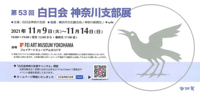 3 9 本日より「第53 回 白日会神奈川支部展」を開催中です! 平面作品を中心とした力作が勢ぞろいです。 沢山のご来場おまちしております💫 ◼︎第53 回 白日会神奈川支部展 2021年11月9日(火)~11月14日(日)※無休 10:00~19:00 ※初日は12:00から 最終日は17:00まで 入場無料 #白日会 #絵画 #水彩 21/11/09 14:04