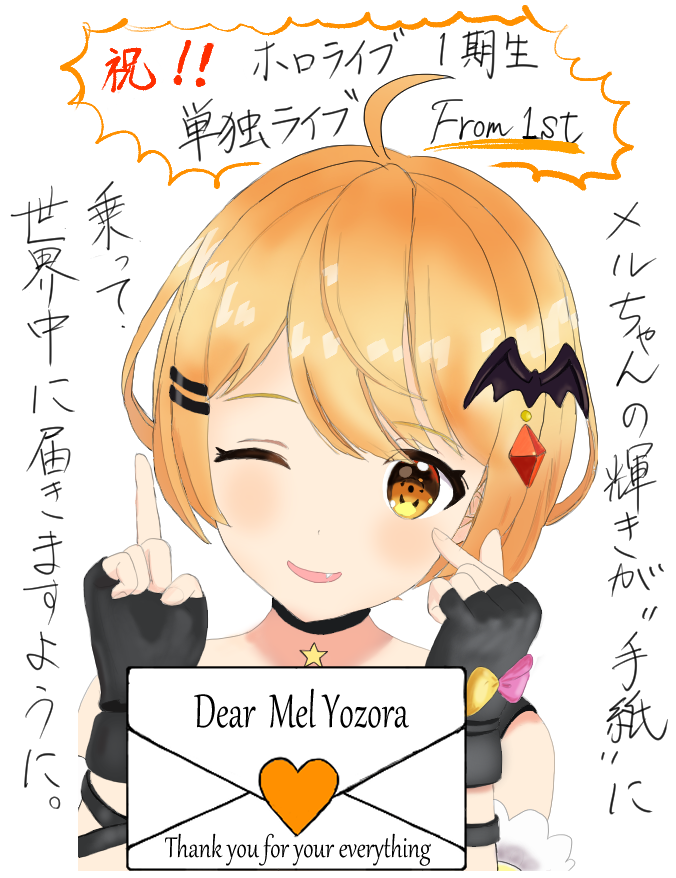 メルちゃん登録者数50万人突破、本当におめでとう! 私に出来ることはほぼ何もないけど、メルちゃんを好きな気持ちは誰にも負けないつもりで推していくね! 液タブでは初のメルちゃんファンアート。謎にGBもつけてみた。 (液タブで文字書きづら過ぎて汚くてごめん) #メルArt #メル生放送 #夜空メル