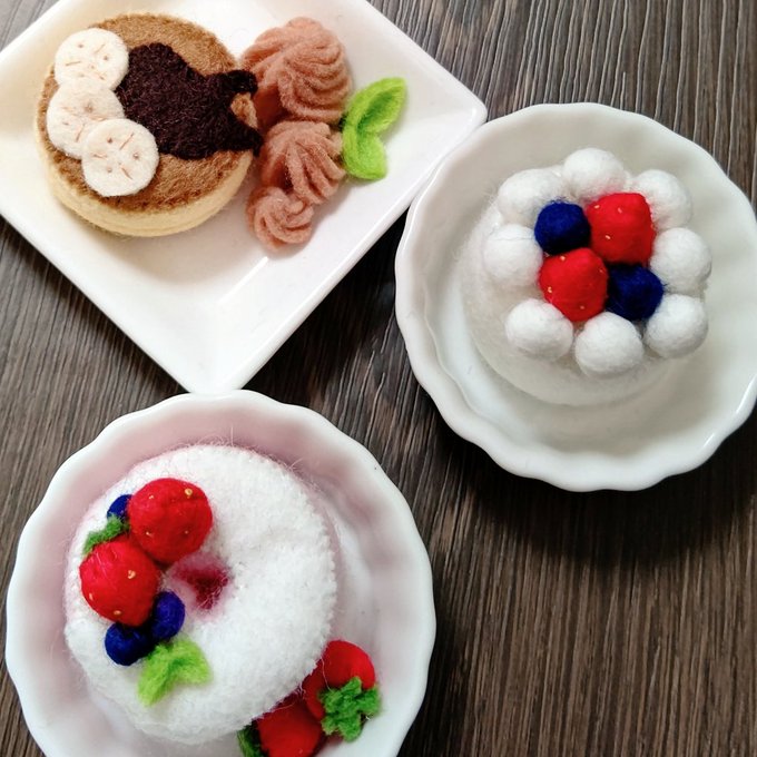 #2021年もあと少しなので今年の作品の中で特に気に入っている作品を上げる #ケーキ #デザートピザ #オープンサンド #フェルトままごと #ピンクッション #mametaro_omocha さんの型紙